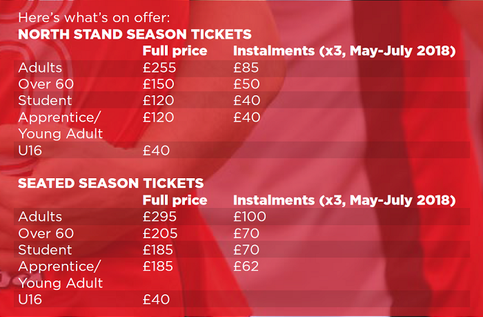 That’s why this limited offer is so good – it gives you the chance to purchase your Season Ticket for 2018/19 at a fixed price, knowing that it’s yours for keeps even if the reds do manage to clinch promotion come the end of the current season.