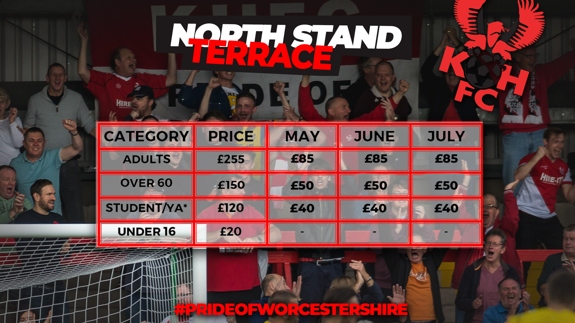 Visit the Aggborough Stadium Ticket Office during opening hours or on a home match day, or call 01562 823 931 to renew by phone.