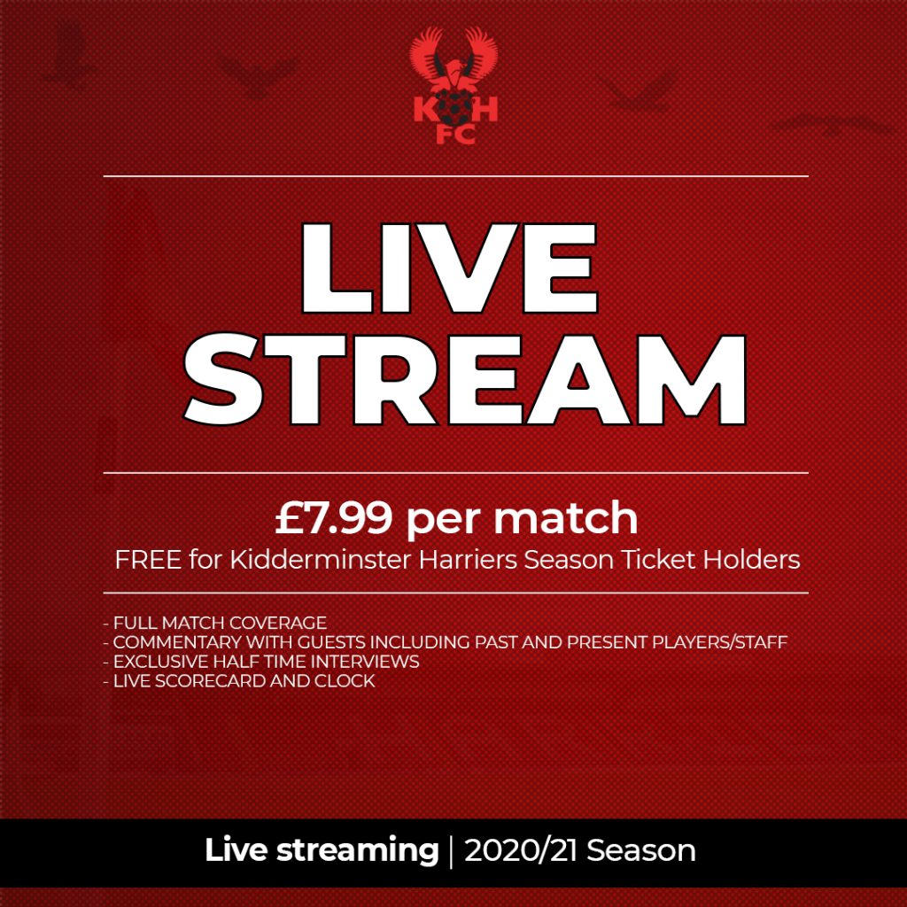 Kidderminster Harriers are excited to announce our new streaming service, which will allow fans to watch all home matches live from the comfort of your own home until fans are allowed entry into Aggborough.