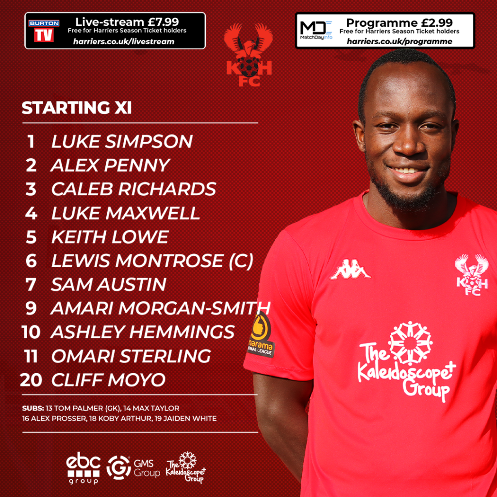 Cliff Moyo gets his first start of the 2020/21 season against Alfreton Town in Harriers’ only change.