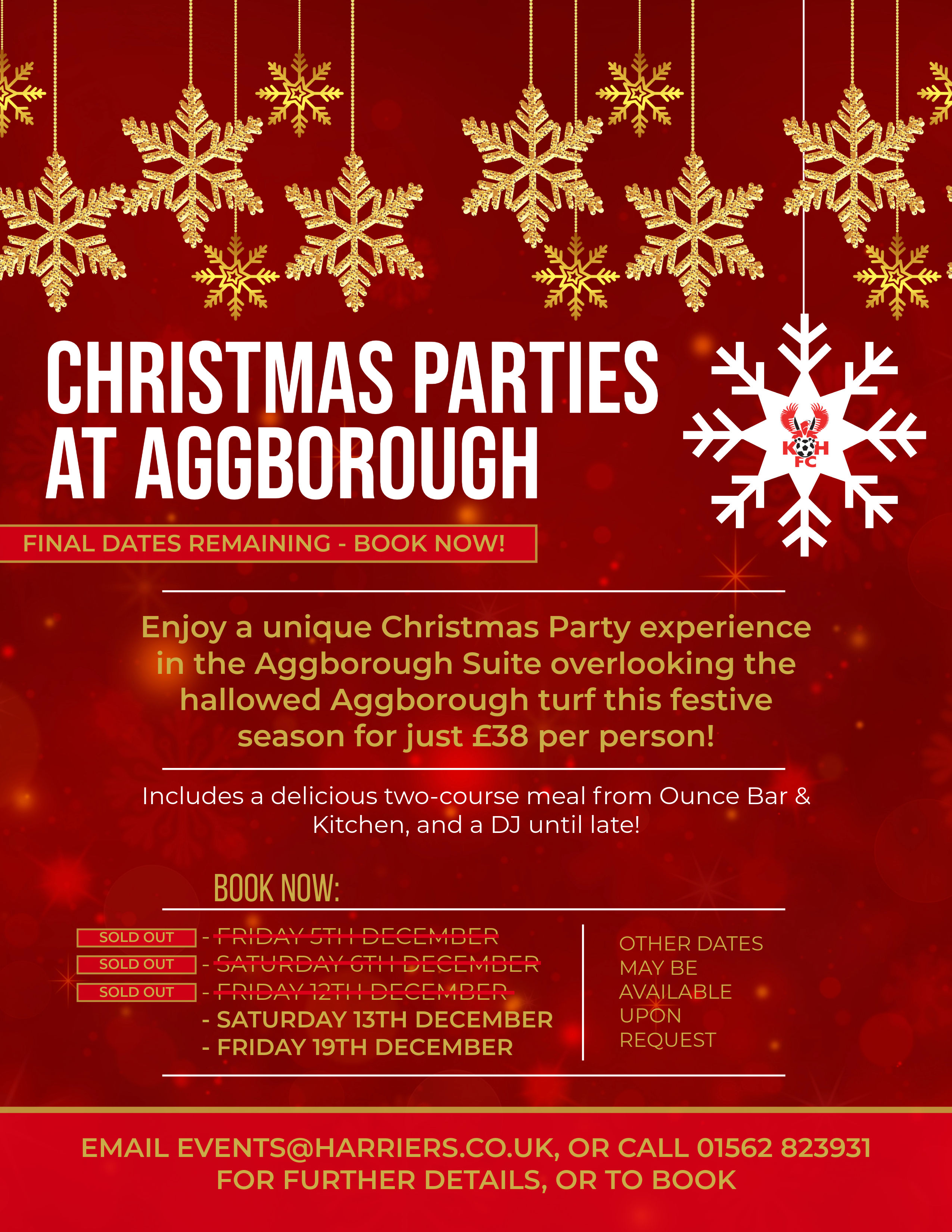 Every December at Aggborough, we host many Christmas parties, so you can sit back, relax, and enjoy the festivities that the Christmas season has to offer, while we do the work for you.