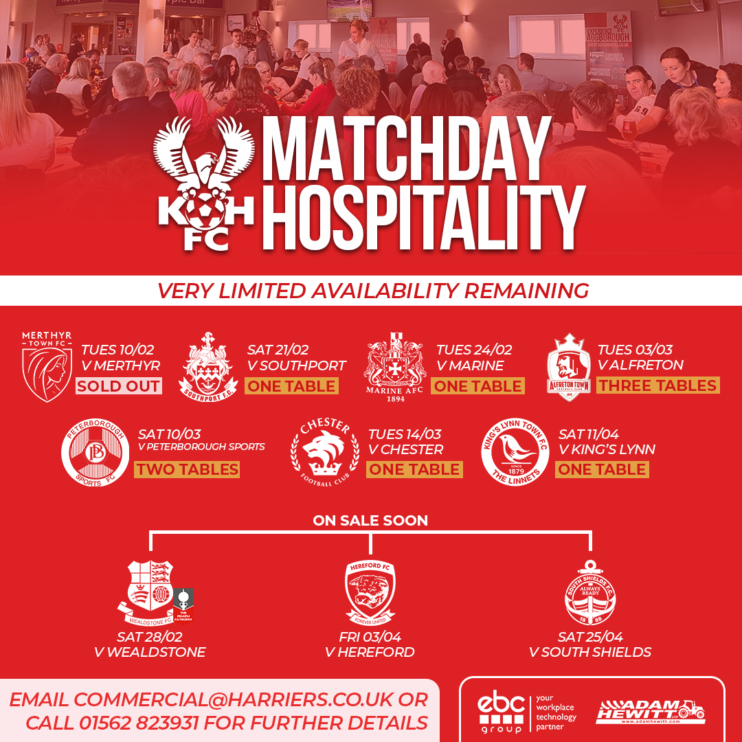 For further details, or to book your place, please email commercial@harriers.co.uk or call 01562 823931.