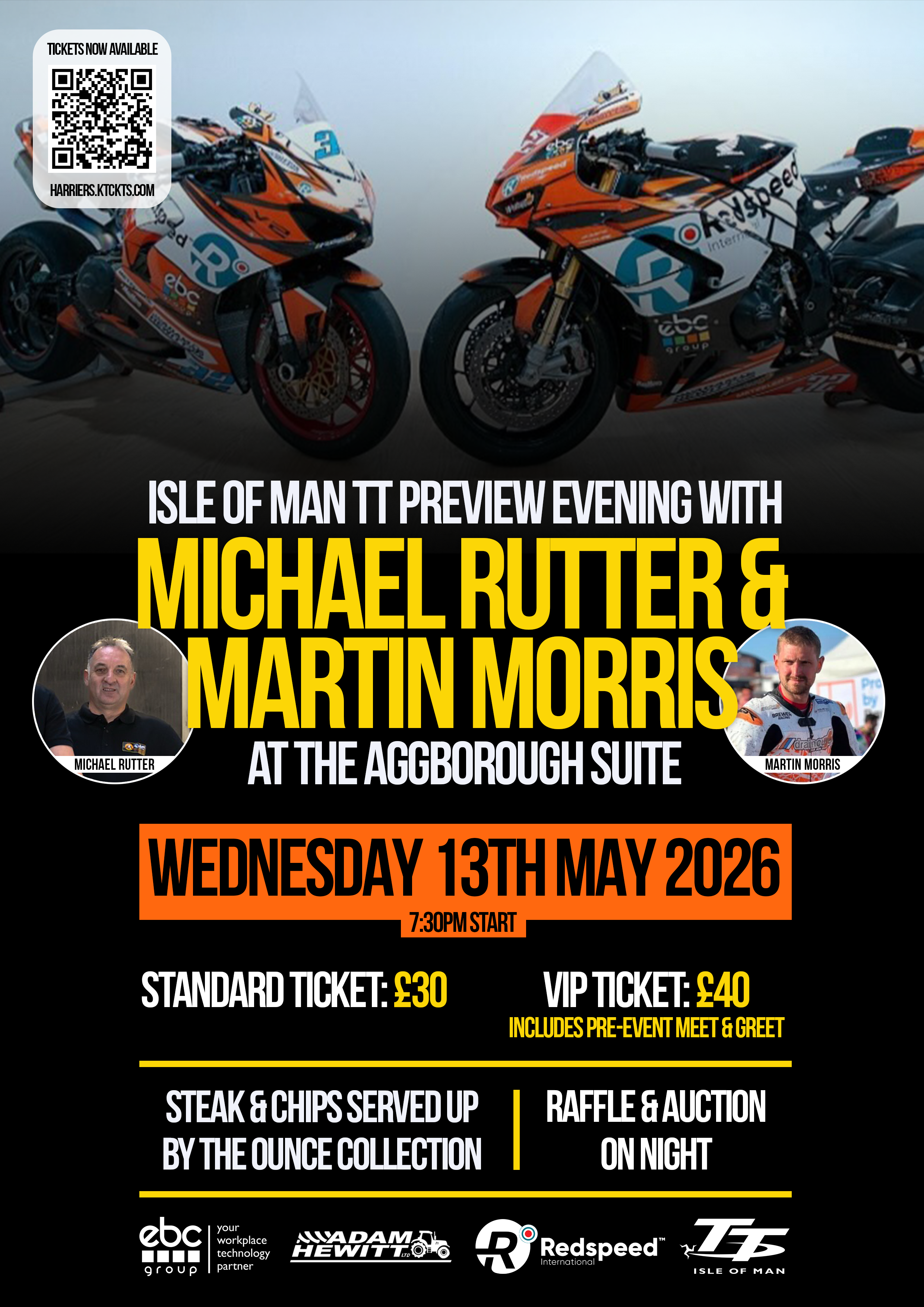 JOIN us for another thrilling evening in the Aggborough Suite, as we host the Isle of Man TT Preview Evening with Michael Rutter and Martin Morris!